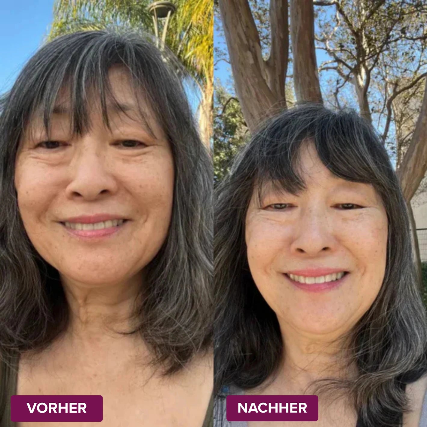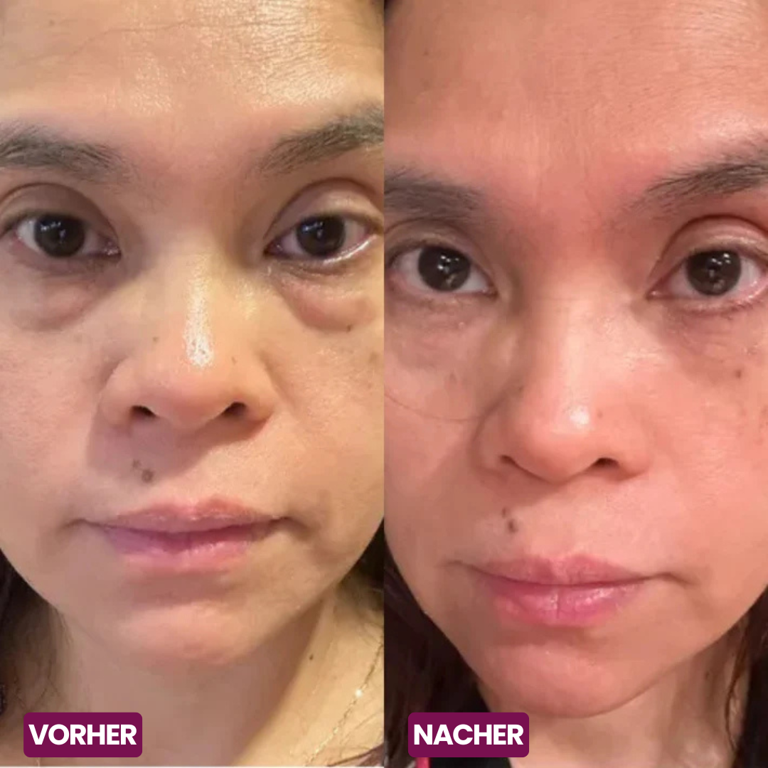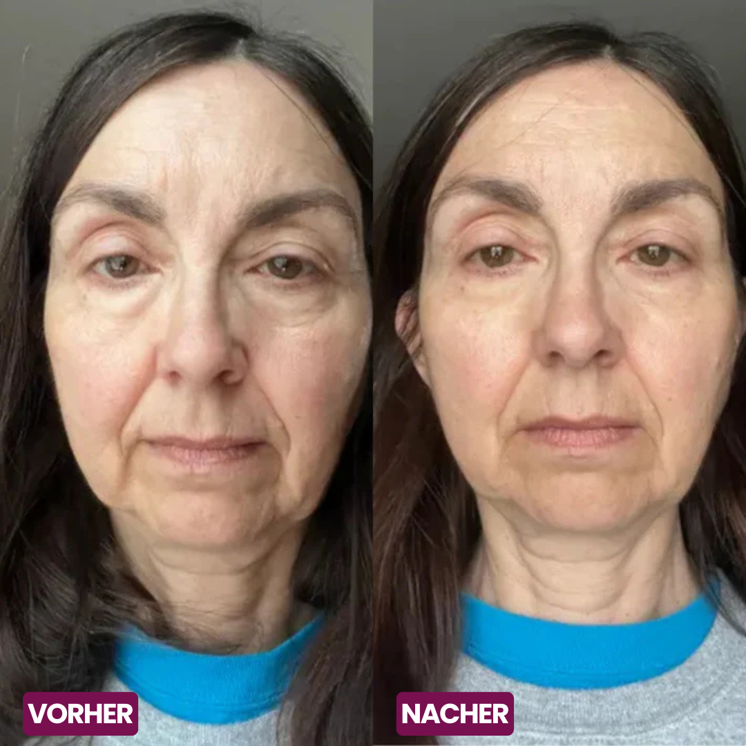 Schon nach wenigen Tagen fühlt sich die Haut weicher und besser durchfeuchtet an. Nach 2–4 Wochen regelmäßiger Anwendung werden Falten sichtbar reduziert und die Haut wirkt glatter, fester und strahlender.