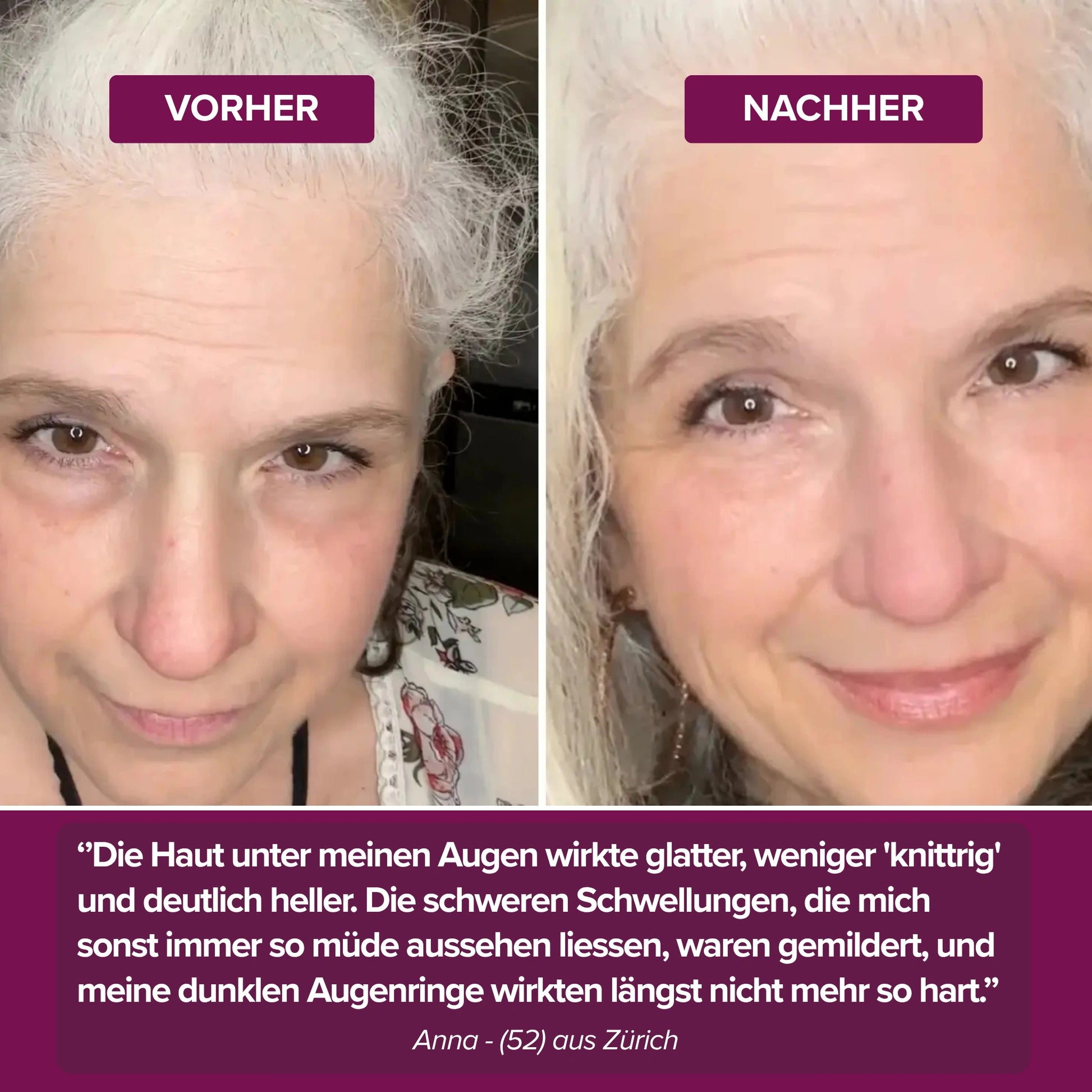 Ich war skeptisch, aber nach 3 Wochen sehe ich einen echten Unterschied: Meine Augenringe sind fast weg und die Haut um die Augen wirkt straffer.
